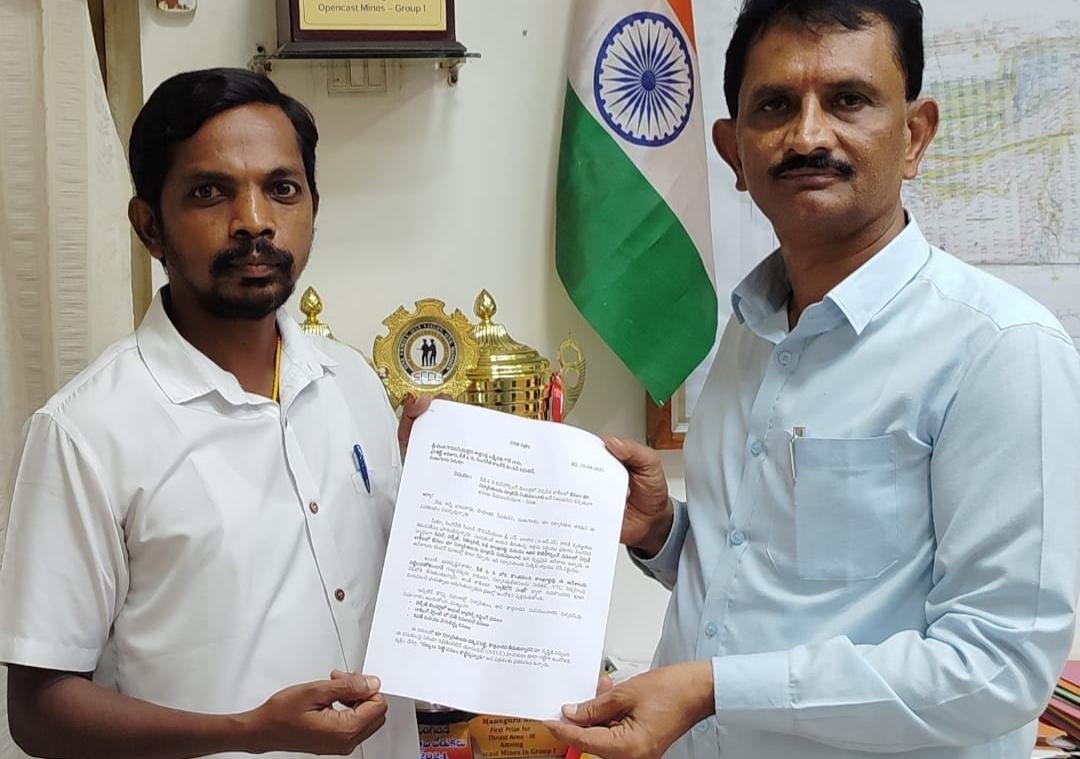 పీకే ఓసి ప్రాజెక్ట్ అధికారి తాళ్లపల్లి లక్ష్మీపతి గౌడ్ కి వినతి పత్రం అందజేసిన సామాజిక సేవకులు కర్నే బాబురావు
