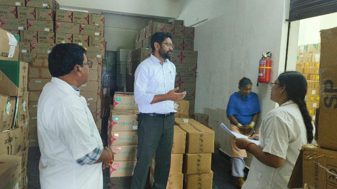 ఈ సందర్భంగా ఆయన స్టోర్‌లో నిల్వ ఉంచిన ఔషధాల లభ్యత, నాణ్యత, గడువు తేది, ఆసుపత్రులకు సరఫరా ప్రక్రియలను పరిశీలించారు. రోగులకు అవసరమయ్యే ఔషధాలు ఎల్లప్పుడూ సమయానికి అందుబాటులో ఉండేలా చర్యలు తీసుకోవాలని, గడువు ముగిసిన మందులను తక్షణమే తొలగించి రికార్డులు సక్రమంగా నిర్వహించాలని ఆయన అధికారులను ఆదేశించారు.