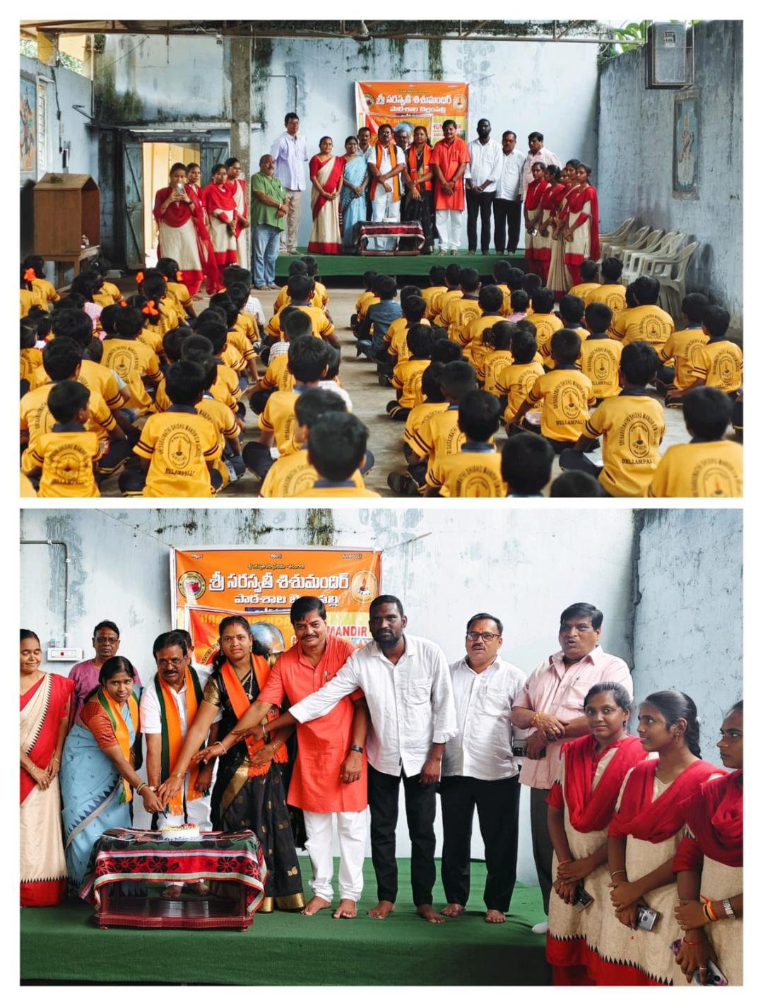 ఈ సందర్భంగా స్థానిక శిశు మందిర్ పాఠశాల విద్యార్థుల తో బిజెపి రాష్ట్ర కార్యవర్గ సభ్యులు కొయ్యల ఏమాజి కేకును కోసి ఘనంగా వేడుకలు నిర్వహించారు.